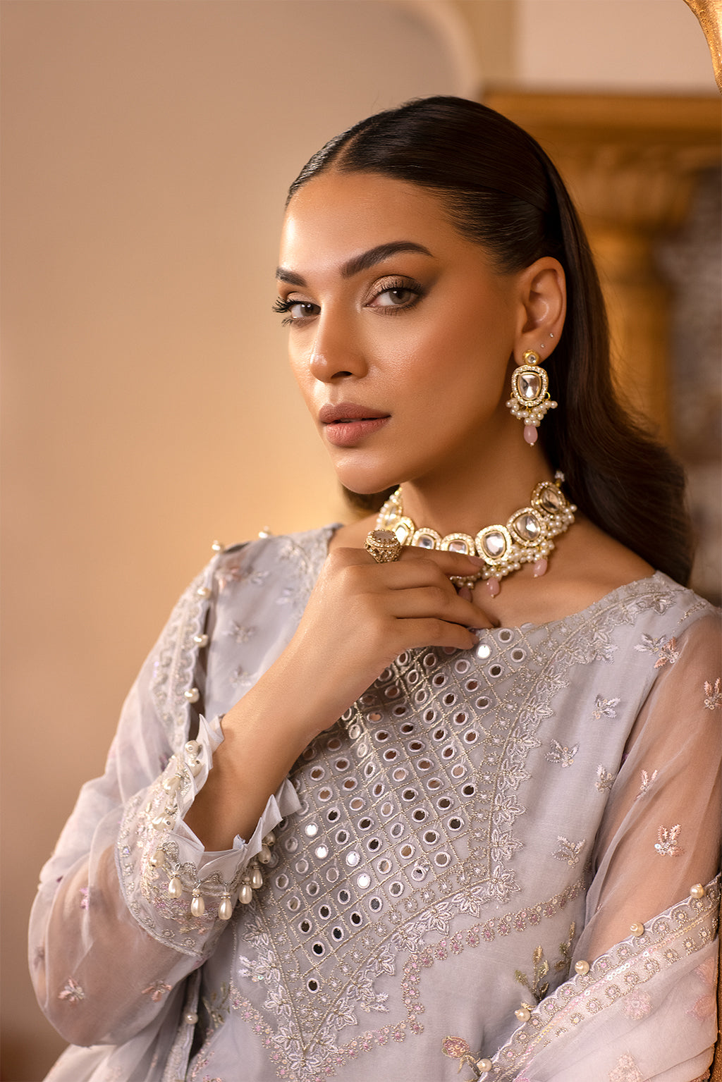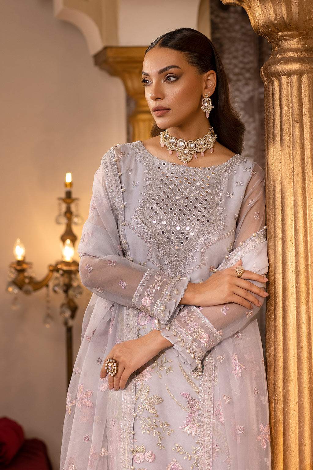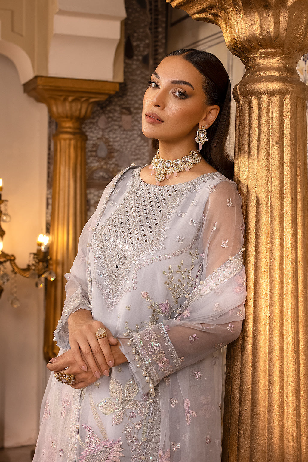 Embroidered neck line on organza 1 pc