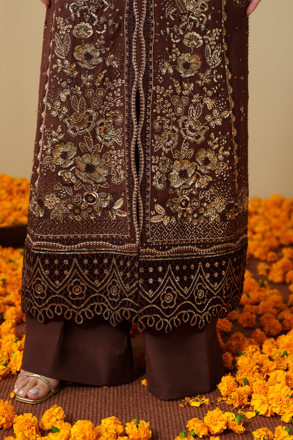 • EMBROIDERED BROWN VELVET FRONT BORDER-(1-M)
