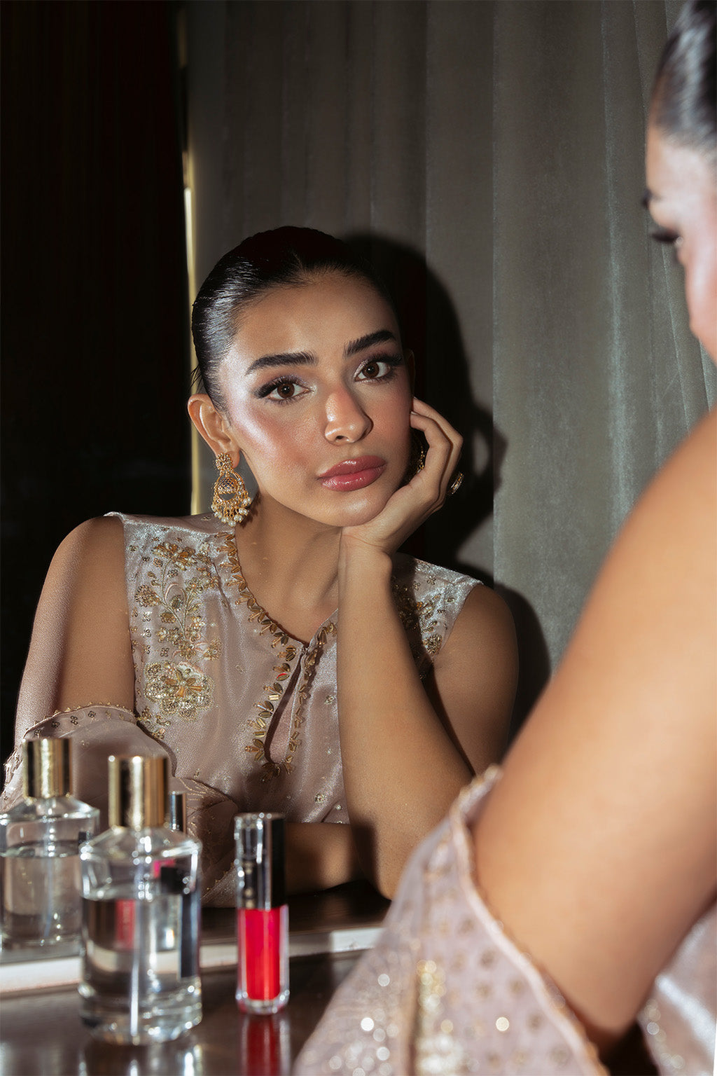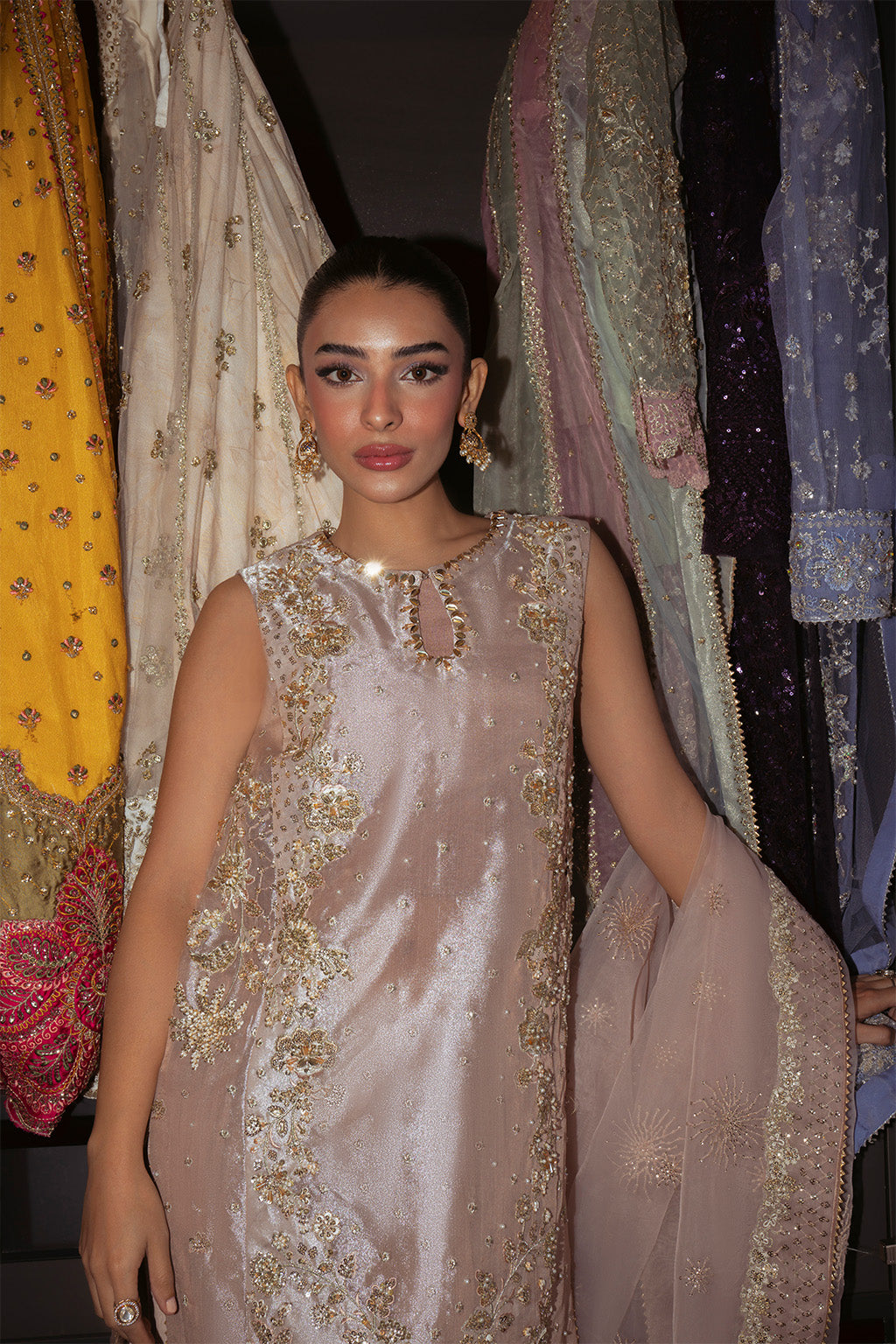 • EMBROIDERED AND HAND EMBELISHED ORGANZA NECKLINE.(1-PIECE)