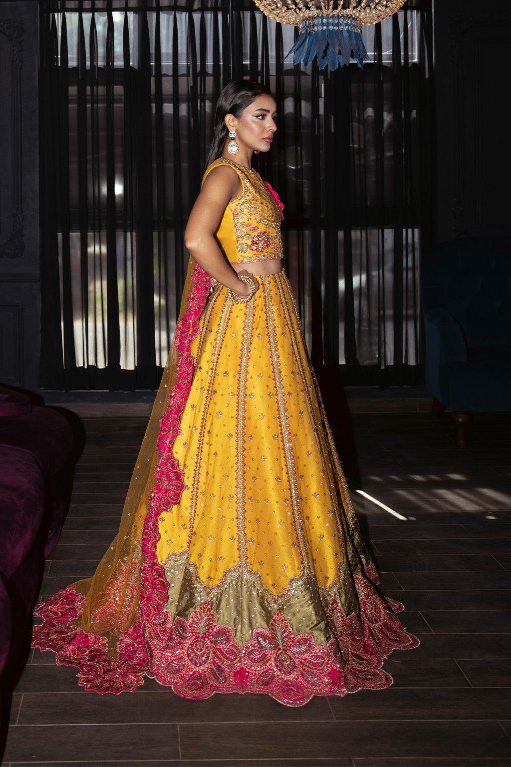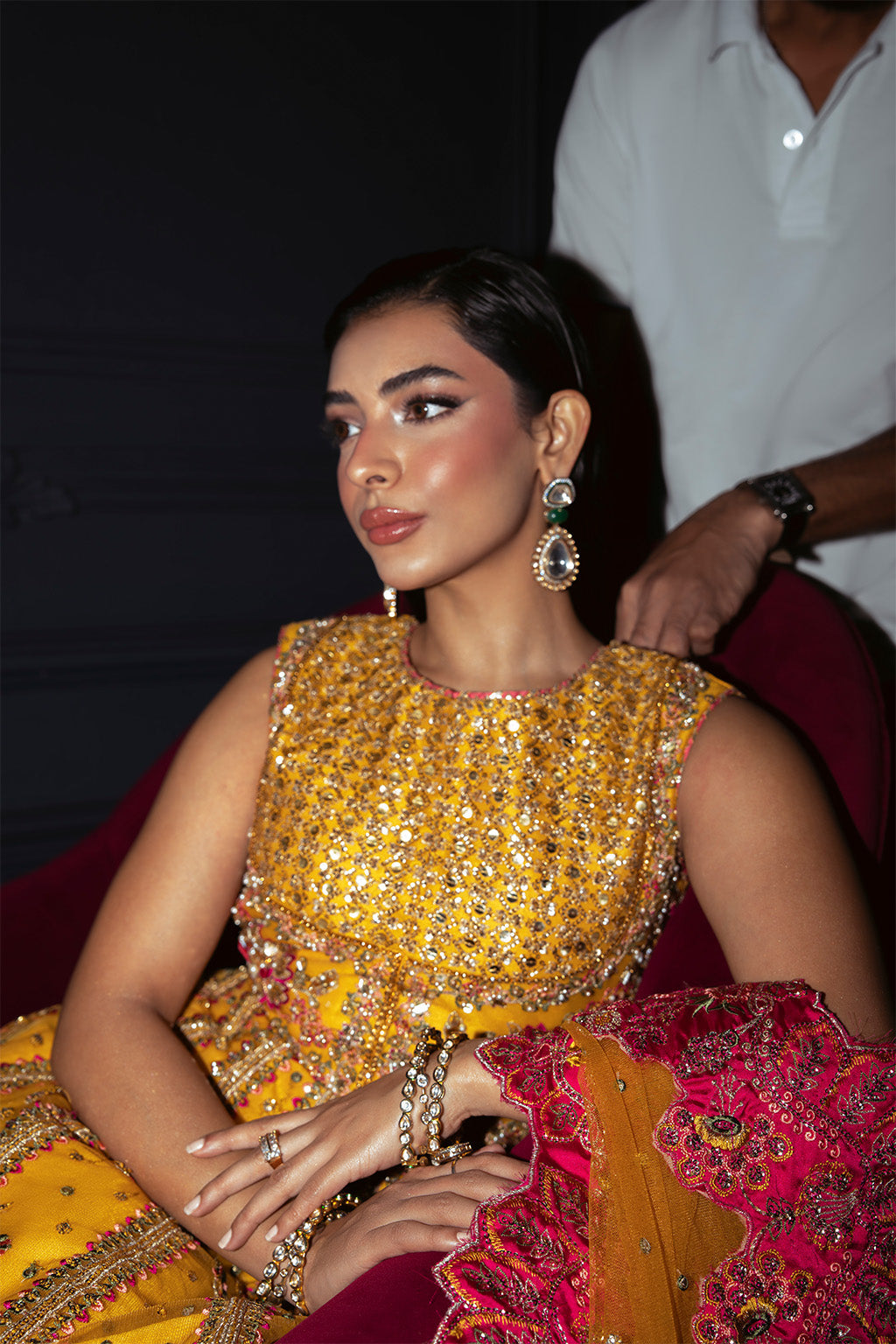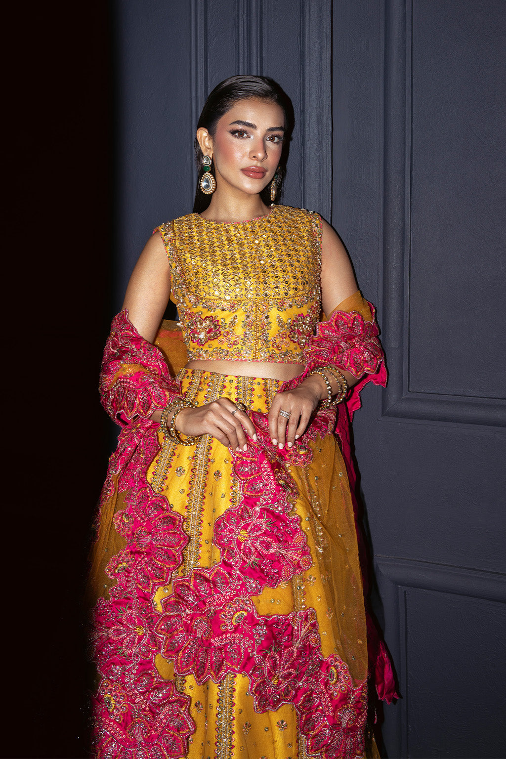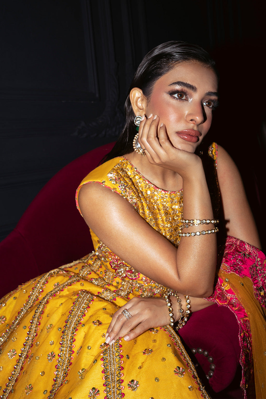 • EMBROIDERED NET MUSTARD FRONT+BACK KALIAN.(14-PIECES)